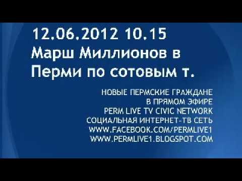 Если вы хотите сделать в прямом интернет-ТВ эфире репортаж с Марша миллионов, отправьте ваш номер мобильного и Ваше фото на емейл 74@list.ru , или, если у вас есть возможность выйти с мобильного в видеоскайп по 3G, отправьте запрос в скайп абененту permlive